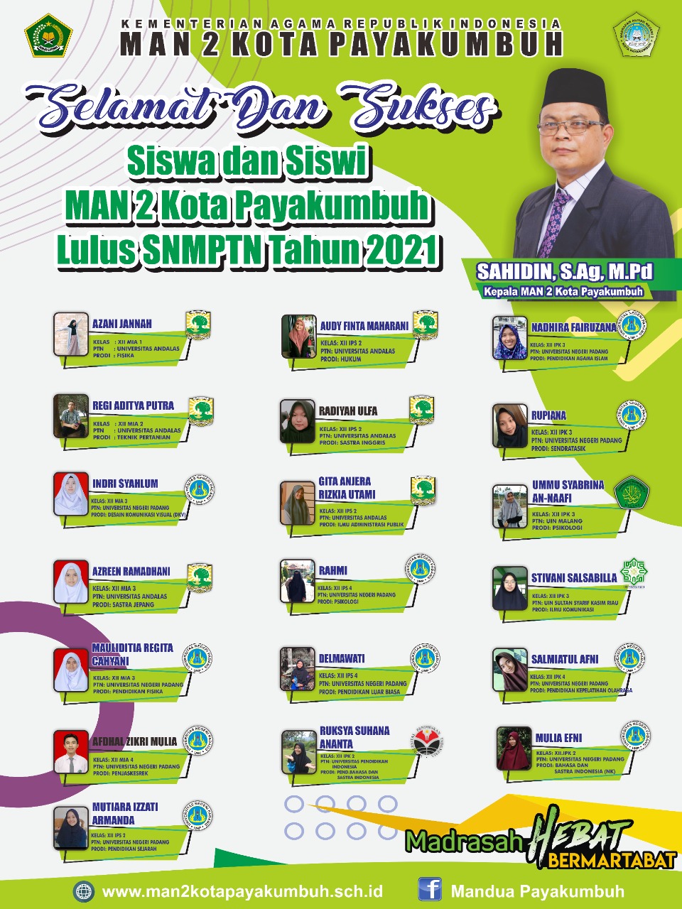 Info kelas x & xi untuk tetap stay at home & semoga terjaga dari bahaya yang menghadang. Man 1 yogyakarta (212 nasional); Para peserta didik yang lolos snmptn ini diterima diberbagai jurusan di ptn, di antaranya jurusan pendidikan dokter, teknik, kimia, fisika, . Proses seleksi snmptn tahun ini berdasarkan nilai akademik dan prestasi lainnya yang ditetapkan oleh ptn. Sukses siswa/i man 1 pesawaran yang berhasil lulus seleksi sbmptn ltmpt 2020 di ptn.